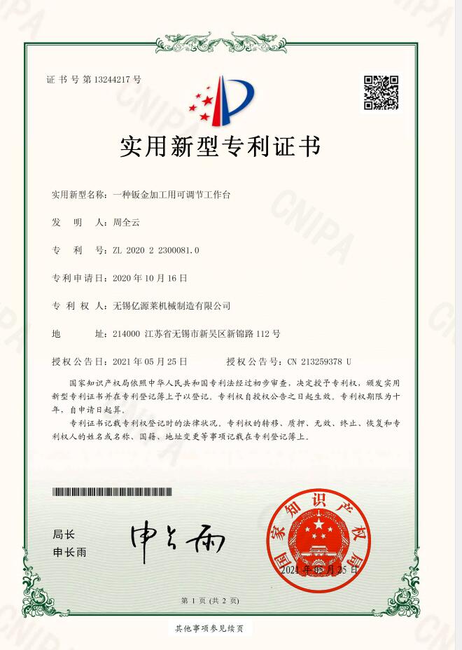 榮譽(yù)資質(zhì)無(wú)錫億源萊機(jī)械制造有限公司